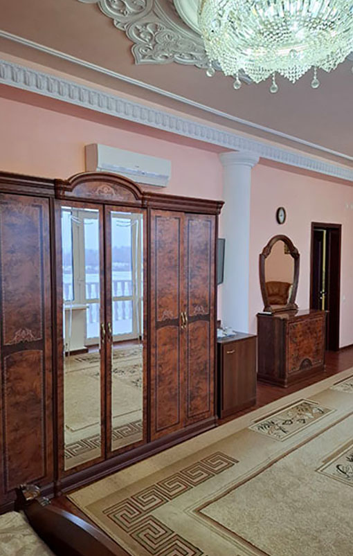 Проживание возможно в уютных комфортабельных номерах различных категорий в 5-ти корпусах санатория общим числом мест 450, а также в расположенных на территории санатория коттеджах.
